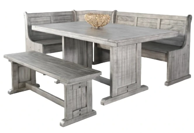 Set Includes: Long bench and corner back, short bench and corner seat, side bench and table