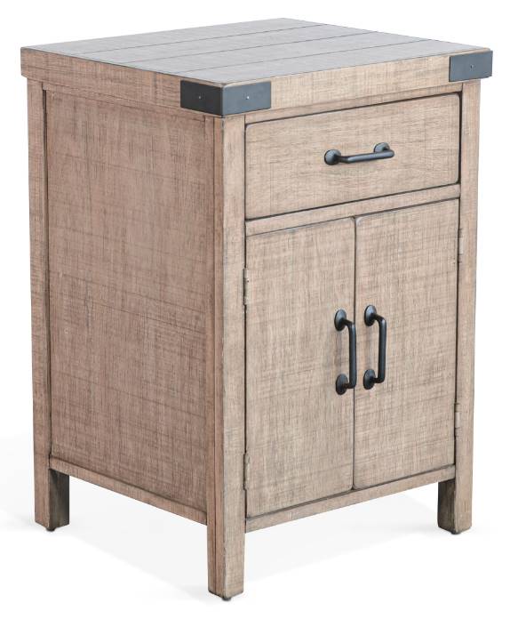 This nightstand features clean lines and a mixed-material look that combines modern style with industrial flair. Its frame is made from mahogany solids and veneers with metal corner accents and industrial style hardware.With the drawer and extra storage behind doors, there is plenty of space to tuck away nick nacks.Read More